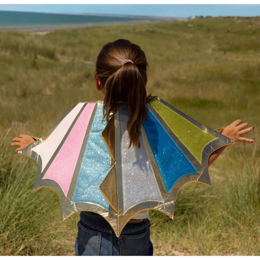 Ailes de dragon multicolores confortables et légères. Idéales pour compléter un déguisement enfant.