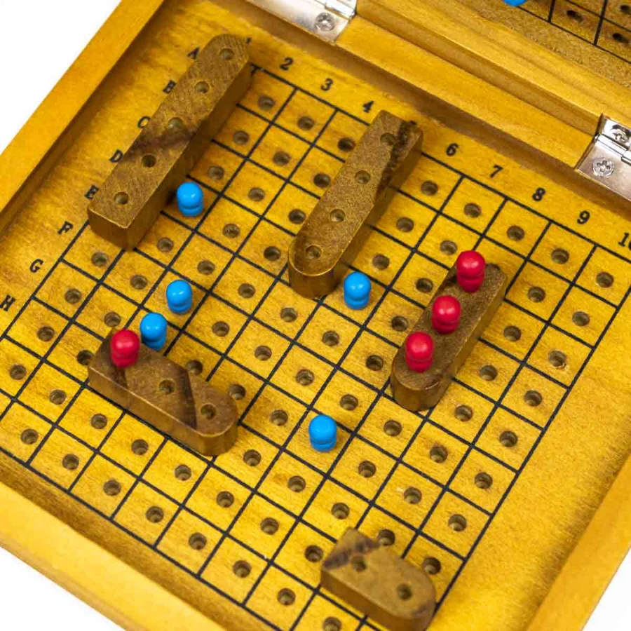 - Contenu : 1 plateau de jeu pliable en bois, navires de différentes tailles, pions de marquage, règles du jeu