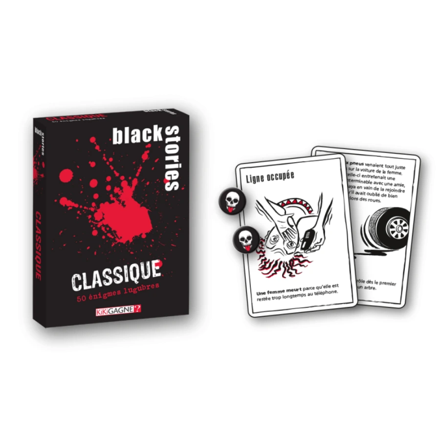 Avec Black Stories, plongez dans 50 scénarios mystérieux et dérangeants :