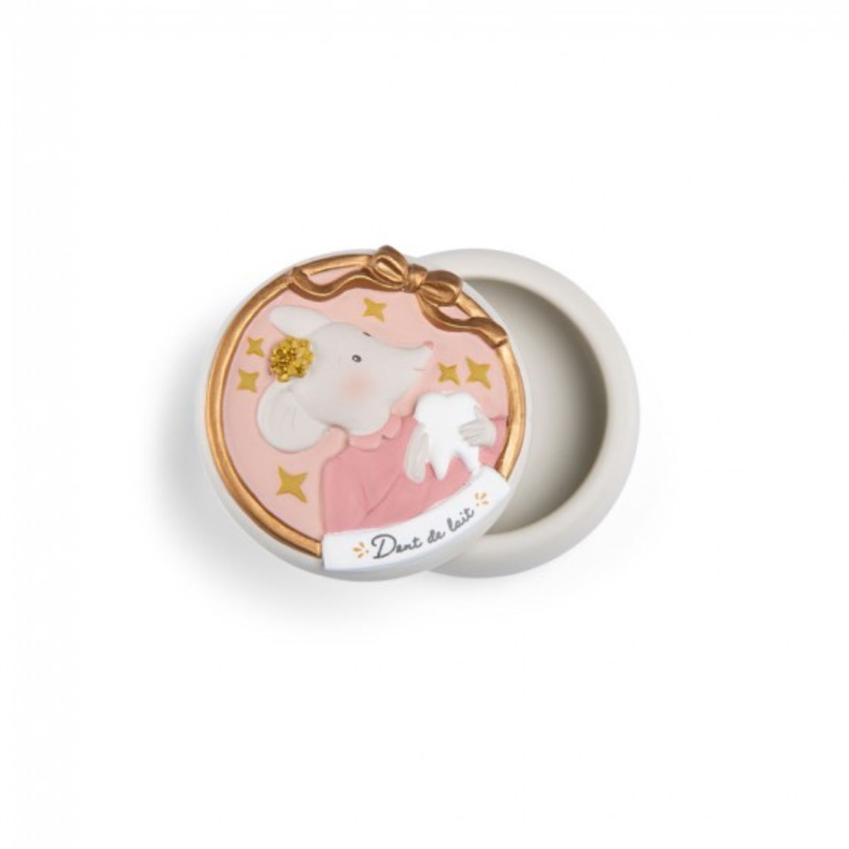 Boîte à dent de lait bébé La petite école de danse. Une jolie souris en volume veille tendrement sur les premières dents de l’enfant.