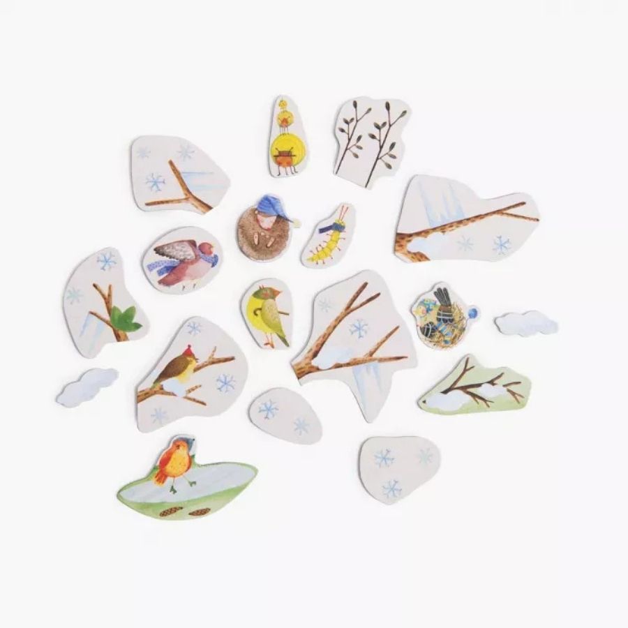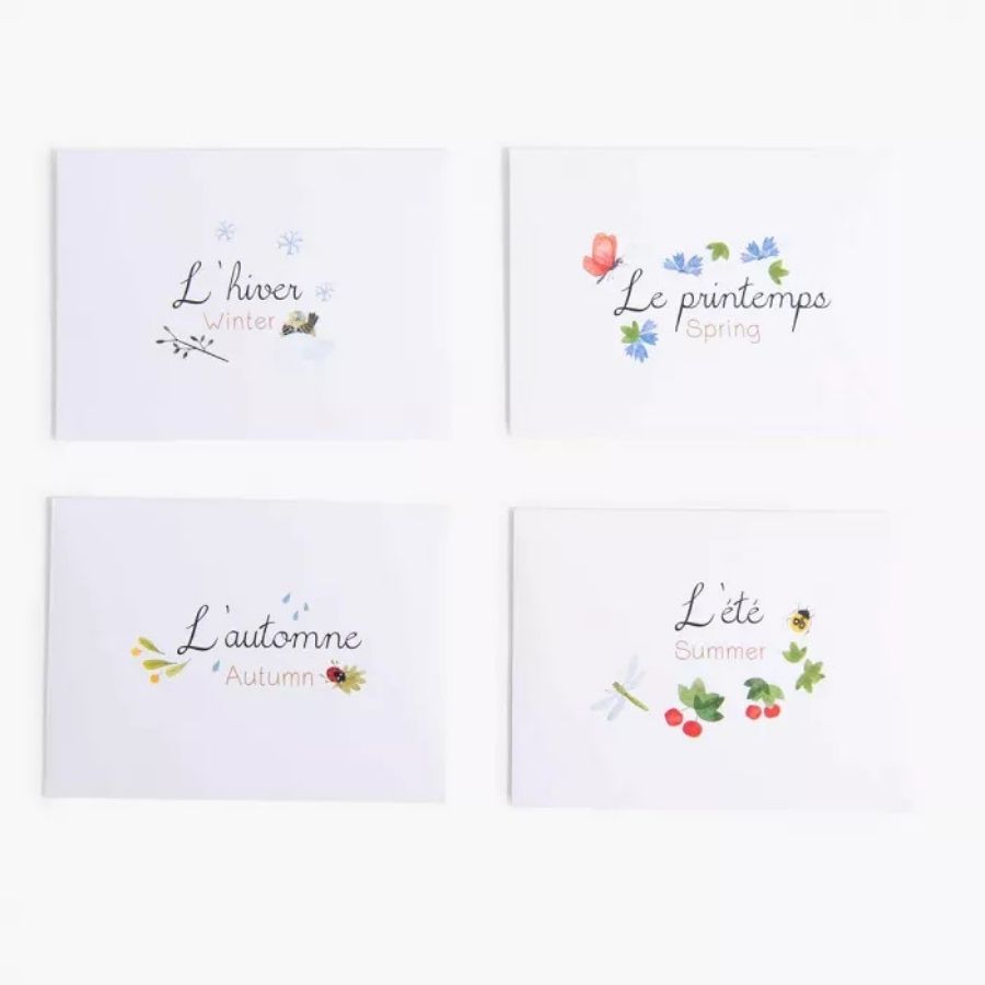 Chaque saison a sa propre enveloppe de rangement, pour organiser les magnets et suivre les changements tout au long de l’année. C’est un outil idéal pour développer le vocabulaire, la logique et le sens du rythme naturel.
