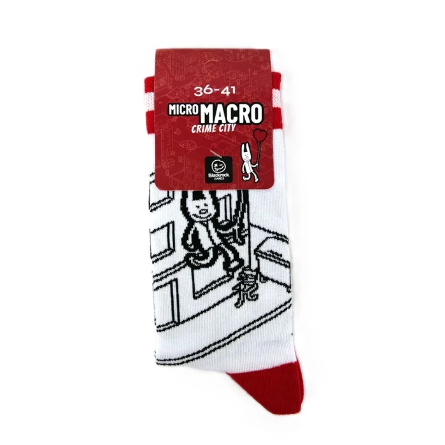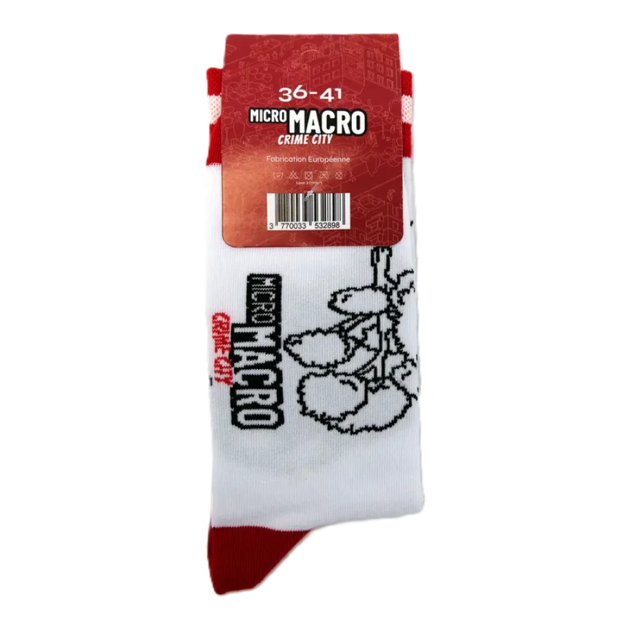 Des chaussettes stylées et douces inspirées de l’univers Micro Macro Crime City, parfaites pour les amateurs de jeux de société.
