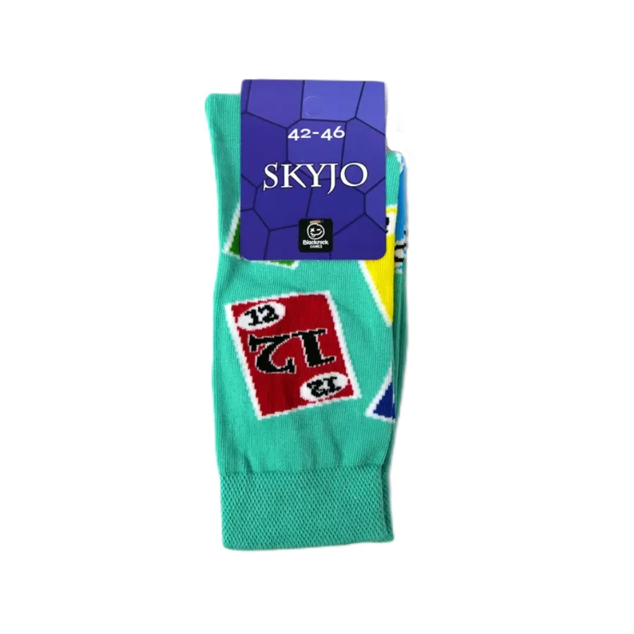 Les chaussettes Skyjo reprennent les couleurs vives et l’univers joyeux du jeu de cartes le plus vendu en France. Elles sont parfaites pour les soirées jeux entre amis ou simplement pour ajouter une touche ludique et décalée à votre tenue.