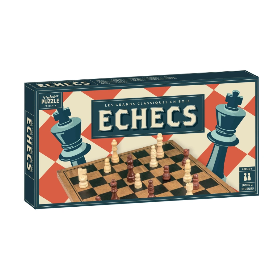 Avec Échecs Bois Vintage, Professor Puzzle propose une version élégante et accessible du célèbre jeu de stratégie. Ce coffret contient 32 pièces en bois joliment sculptées et un plateau pliable, idéal pour jouer à la maison ou en déplacement.