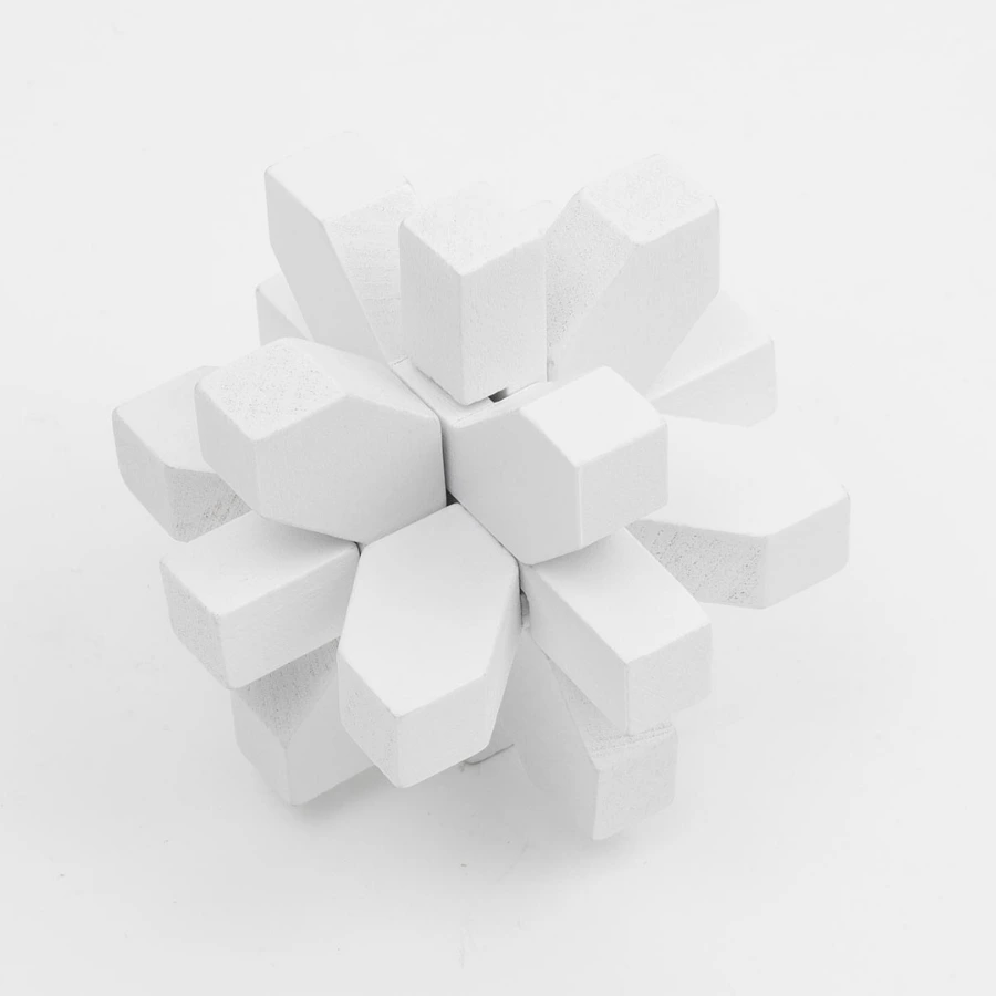 Le casse-tête Flocon de Professor Puzzle est un puzzle en bois au design hivernal et élégant. À première vue, il ressemble à une décoration de Noël ou à un objet d’art géométrique. Mais ne vous y trompez pas : une fois démonté, il vous faudra ingéniosité et patience pour le reconstituer.