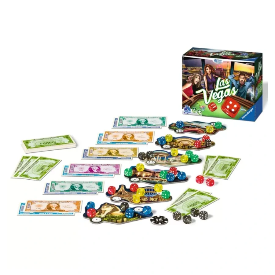 Las Vegas est un jeu de dés dynamique où chaque lancer peut tout changer. Les joueurs incarnent des flambeurs prêts à tenter leur chance dans les casinos les plus clinquants de la ville. Le but est simple : placer ses dés au bon endroit pour récupérer les plus gros billets. Mais attention, vos adversaires ne vous laisseront rien gagner facilement !