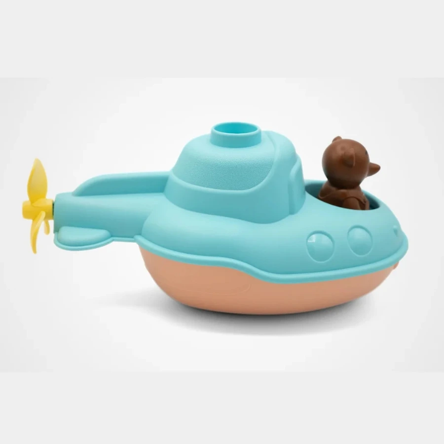 Le Sous-Marin de Petit Ours Brun, couleur menthe, fabriqué en France par Le Jouet Simple. Jouet de bain 2-en-1, lavable et recyclable.