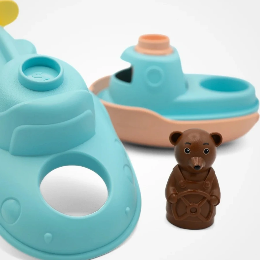 Avec son sous-marin couleur menthe qui se transforme en bateau et sa figurine de Petit Ours Brun, l’enfant part à l’abordage ! Ce jouet 2-en-1 flotte sur l’eau et permet aux enfants de construire et déconstruire le véhicule grâce à ses coques amovibles. Un jeu idéal pour développer la coordination, l’imagination et l’éveil dès 2 ans.