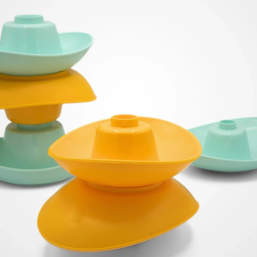 Les 6 Barques Gigognes couleurs pastel turquoise & jaune : un jouet multifonctions pour l’éveil
