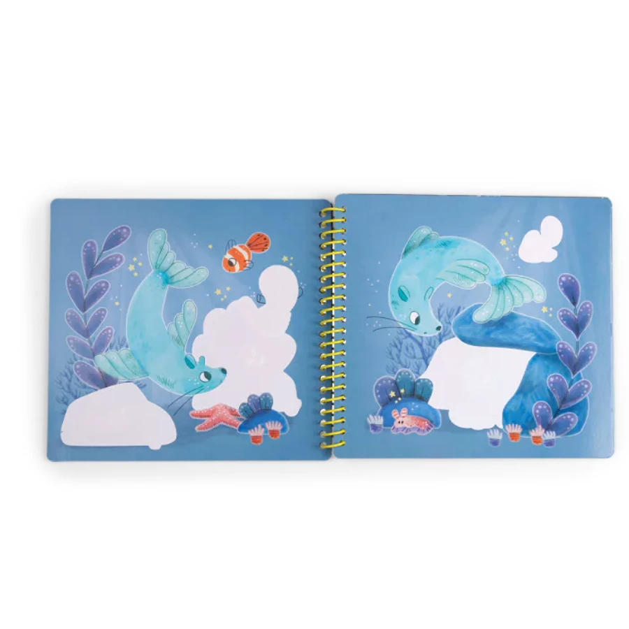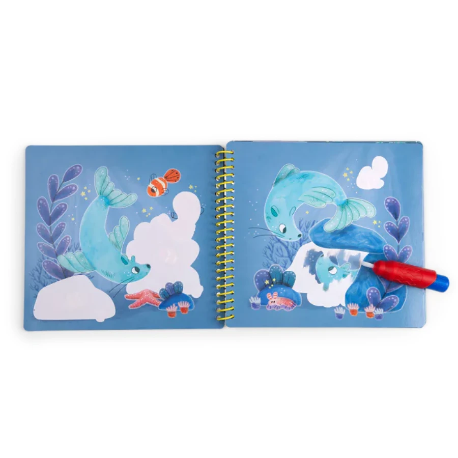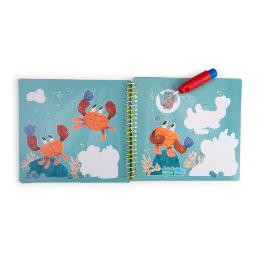 Une fois sèches, les dessins disparaissent et le cahier peut être réutilisé à l’infini. Une activité simple, propre et fascinante qui stimule la curiosité et la créativité des enfants dès 3 ans.