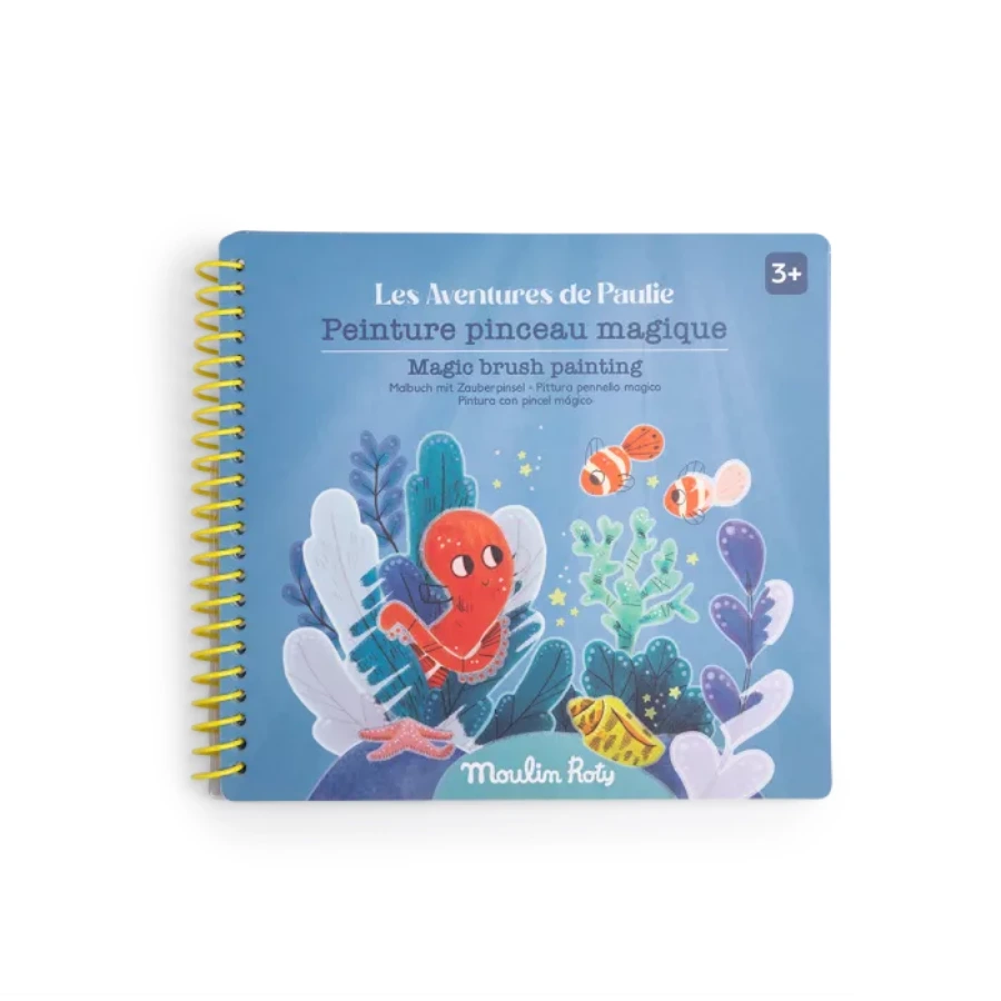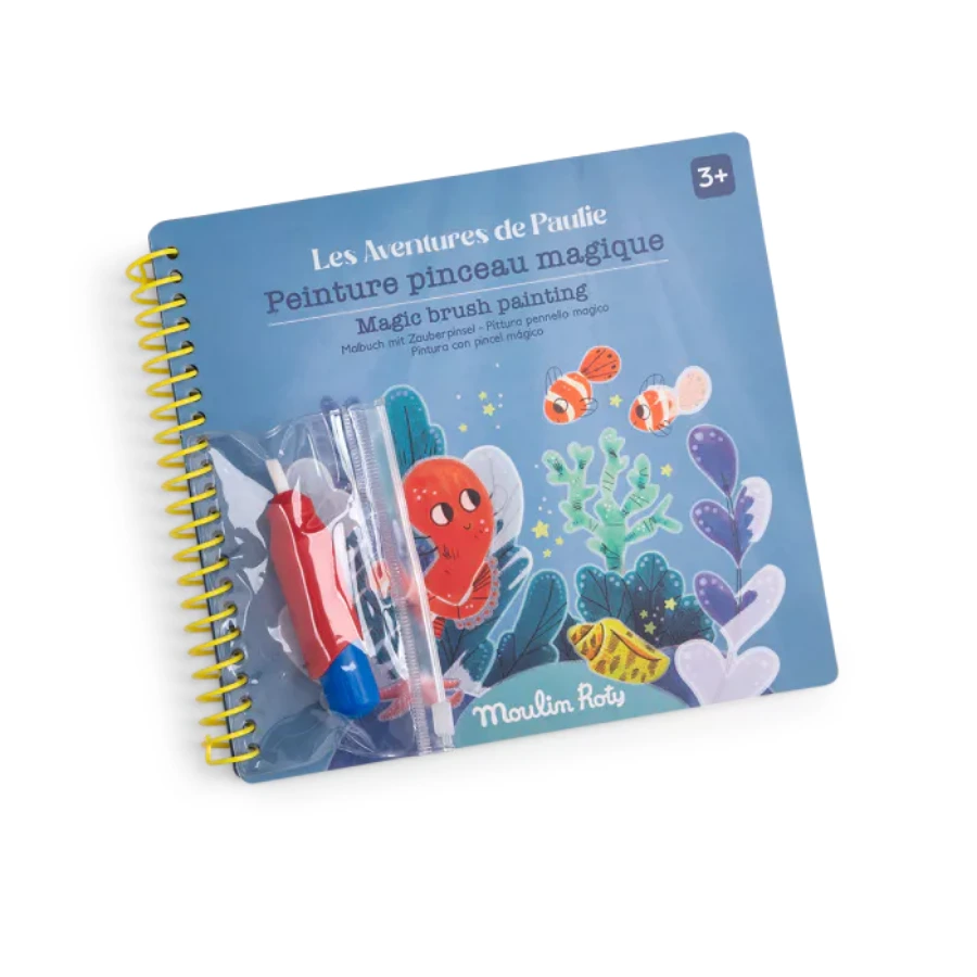Cahier de peinture magique avec pinceau à eau pour révéler les aventures de Paulie le poulpe.