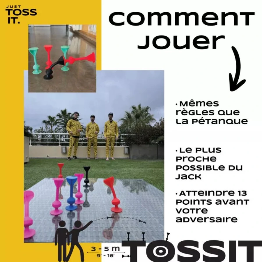 Tossit se joue à 2 joueurs, dès 3 ans, pour des parties de 20 minutes. Il développe la précision, la coordination, et l’esprit tactique. Les règles sont simples, les parties dynamiques, et les fous rires garantis.
